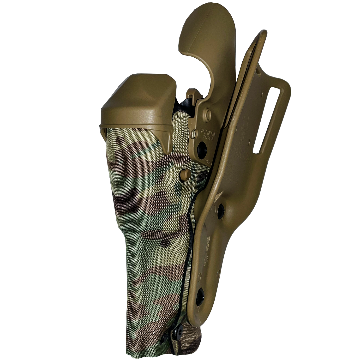 Kabura wykonana jest z wytrzymałego materiału syntetycznego Safariland SafariLaminate, pokrytego odporną na przetarcia Cordurą. Konstrukcja zapewnia doskonałą ochronę broni, a jednocześnie umożliwia szybkie i płynne dobycie pistoletu.