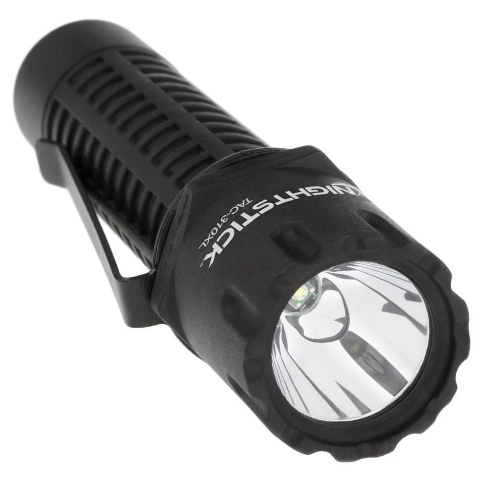 TAC-310XL Polimerowa latarka taktyczna – 2 baterie CR123 Ta kompaktowa, polimerowa latarka taktyczna Xtreme Lumens™ wykorzystuje diodę LED o mocy 500 lumenów, która w połączeniu z wysokowydajnym, głębokim reflektorem parabolicznym generuje użyteczny strumień światła o zasięgu 150 metrów. Przełącznik na tylnej nakrętce umożliwia przełączanie między trybem chwilowym i ciągłym. Obudowa wykonana jest z polimeru nylonowego z dodatkiem włókna szklanego. Zasilanie pochodzi z dwóch dołączonych baterii litowych CR123. (Niekompatybilne z akumulatorami.